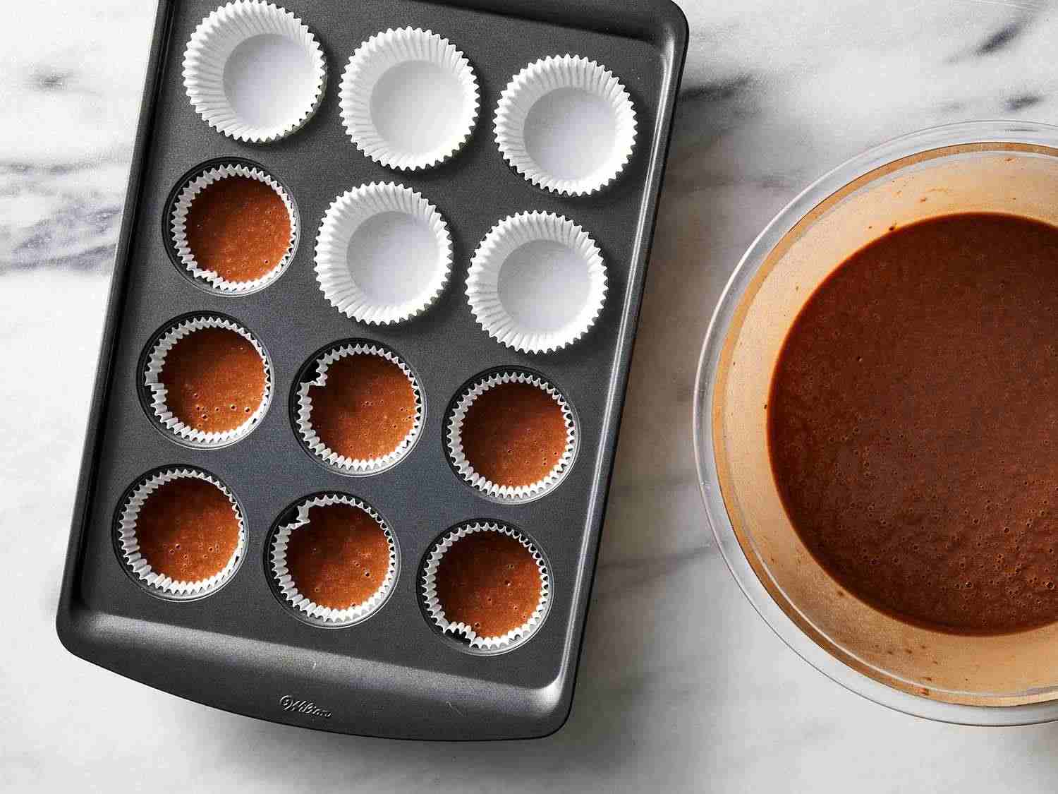- Step 3:Fill each muffin cup halfway with batter. Dotdash Meredith Food Studios